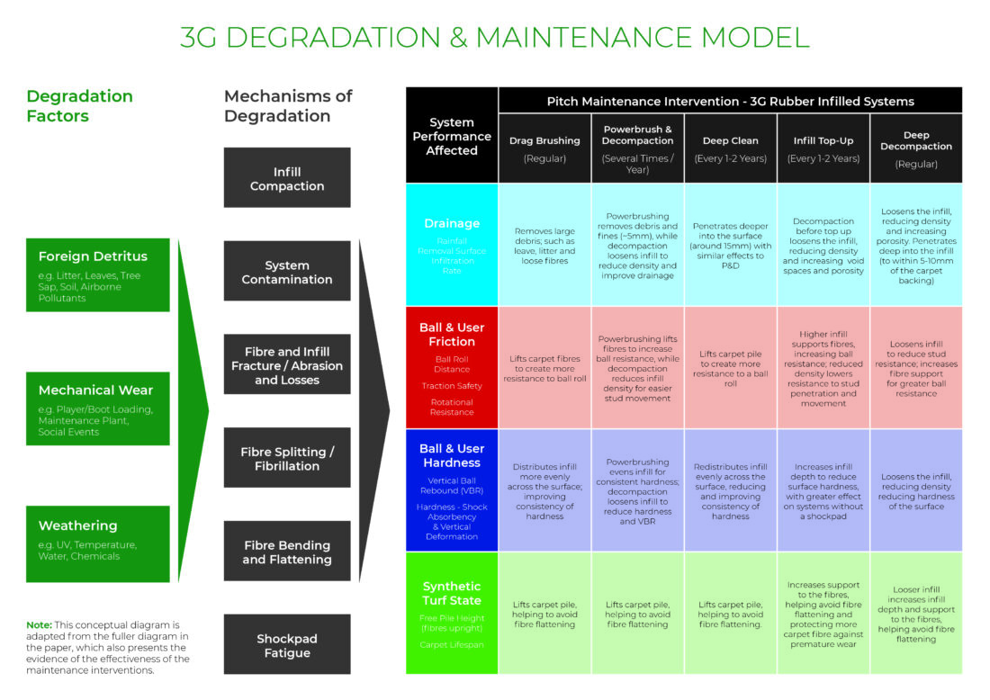 The research utilised detailed field trials conducted between 2011 and 2018, alongside a database of approximately 750 3G pitch inspections and interventions.